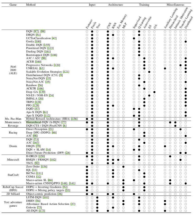 论文中对各种与 深度学习 相关的流行游戏及研究平台的特征及面临的挑战做了详尽的介绍,这里不再一一赘述。