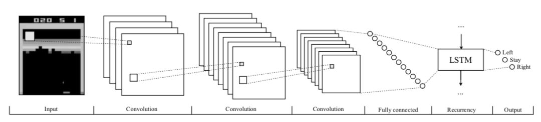 RNN 通常应用于时间序列数据,其中网络的输出取决于先前时间步骤的激活。除了网络的先前隐藏状态与下一个输入一起反馈给网络外,RNN 的训练过程类似于前馈网络。这就允许网络通过记忆先前的激活而变得具有上下文 感知 ,这在那种单个观察不代表完整状态的游戏中是非常有用的。对于 shipi 视频游戏,通常使用一堆卷积层,然后是循环层和完全连接的前馈层。