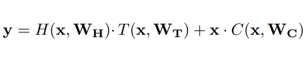高速公路网络受到 LSTM 的启发,它通过门控令信息在多个神经网络层级中可以高效流动,从而能使用传统基于梯度的方法快速训练深度网络。一般而言,若每一层的卷积运算可以用隐藏函数 H 表示,那么给定该层的输入 x 与权重矩阵 W_H,输出可以表示为 y = H(x, W_H)。在高速公路网络中,传入后一层的信息不仅是当前层的计算结果,同时还包含了前面层级的计算结果。高速公路网络会使用门控机制控制每一层向后传递的信息: