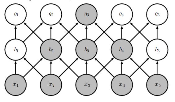 在序列建模任务中,最下层的 x 可视为句子等输入序列,最上层的 g 可视为输出序列,中间的 h 即隐藏层。当然,这种一维卷积并没有限制为只能查看当前时间步以及之前信息的因果卷积。越上层的神经元拥有越广感受野,因此高层的卷积单元将有能力构建长期依赖关系。如上所示,g_3 可以观察到输入序列的所有信息。