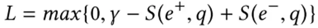 其中 φ(e_u, e_s,e_v) 是当前向量表示计算的结果,s(e_u, e_t,e_v) 是要预测的真值。真值预测的训练目标如下: