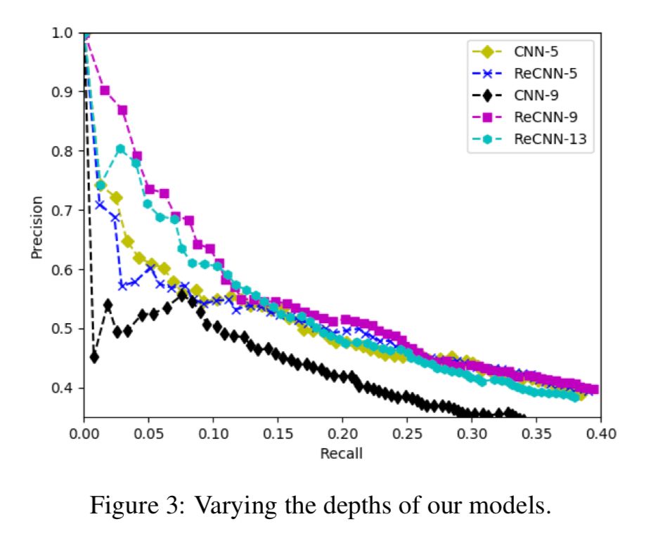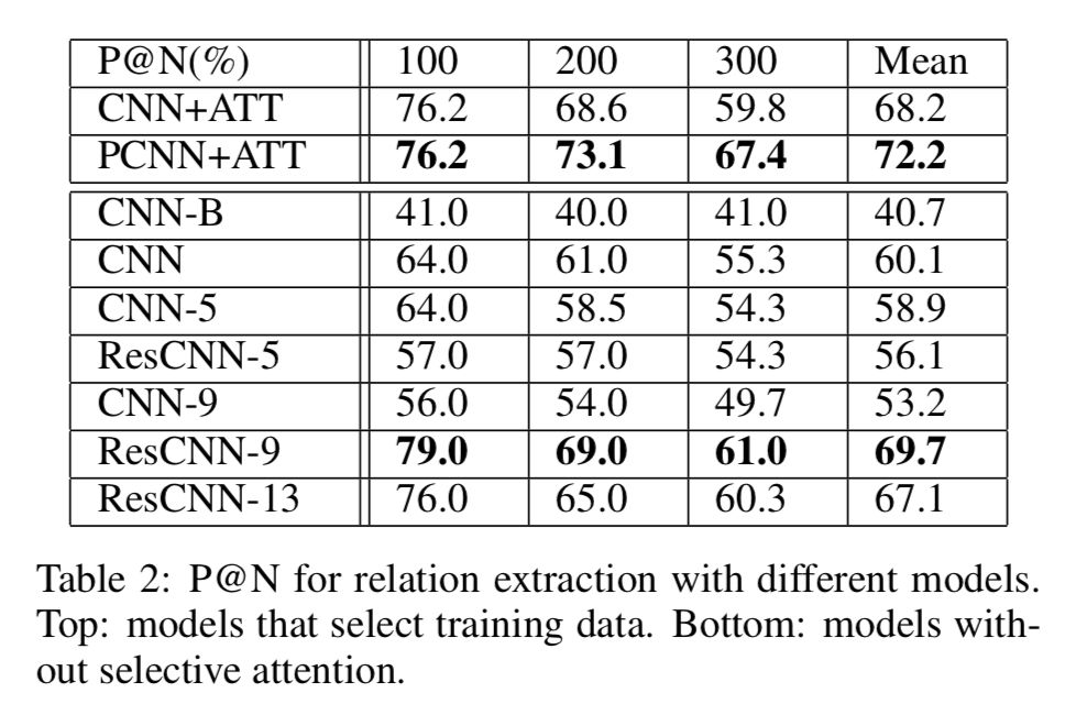 近年来基于 深度学习 方法的远程监督模型取得了不错的效果,但是现有研究大多使用较浅的 CNN 模型,通常一个卷基层加一个全连接层,更深的 CNN 模型是否能够更好地解决以有 噪声 的标注数据为输入的远程监督模型没有被探索。