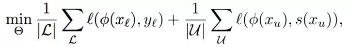 上式前半部分是对 知识图谱 中真实存在的三元组的约束,后半部分为对预测了标签的三元组的约束。