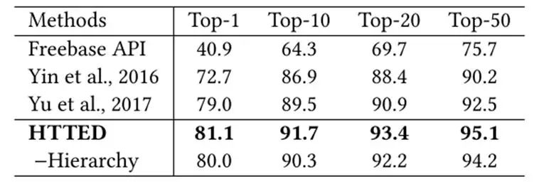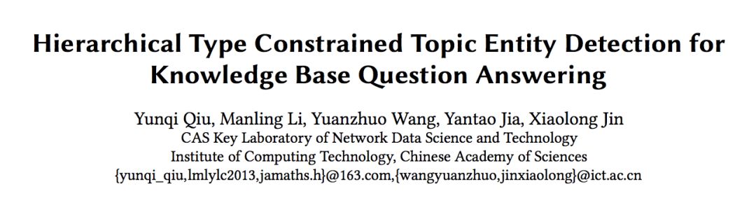 这篇文章,主要有两个主要工作: 其一,是引入了层次结构的实体类型约束,来表达实体的语义,使得与问题上下文相关的实体,更容易被找到; 其二,是建立了基于 LSTM 的 HTTED 模型,提高了主题实体识别的效果。