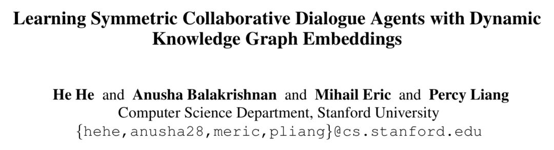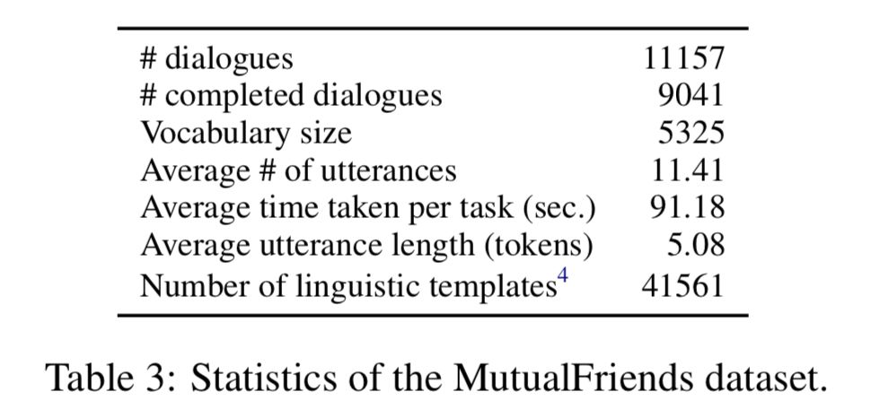 本文研究了对称合作对话(symmetric collaborative dialogue)任务,任务中,两个代理有着各自的 先验知识 ,并通过有策略的交流来达到最终的目标。 本文还产生了一个 11k 大小的对话数据集。