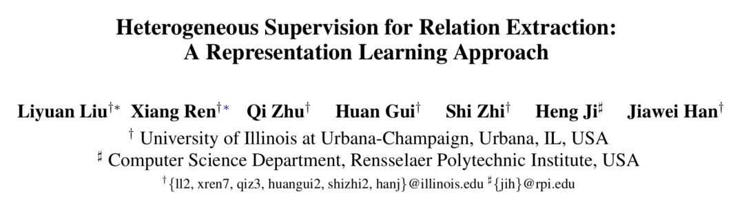 为了解决这个问题, 本文提出使用表示学习的方法实现为关系抽取提供异源监督。