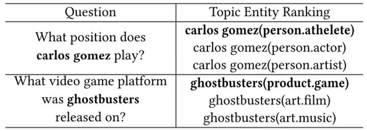 由下图 3 可见,由于使用了层次结构的类型,同名的实体被识别出来,但是与问题上下文更相关的实体都被挑选出来,所以能够正确识别到主题实体。