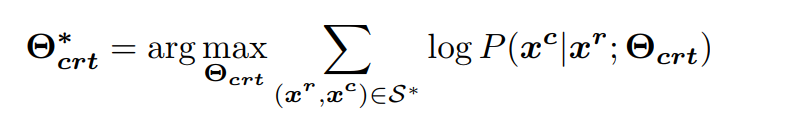 分别是句子 x^r 和 x^c 的第 M 和第 N 个单词,则纠错 seq2seq 模型通过