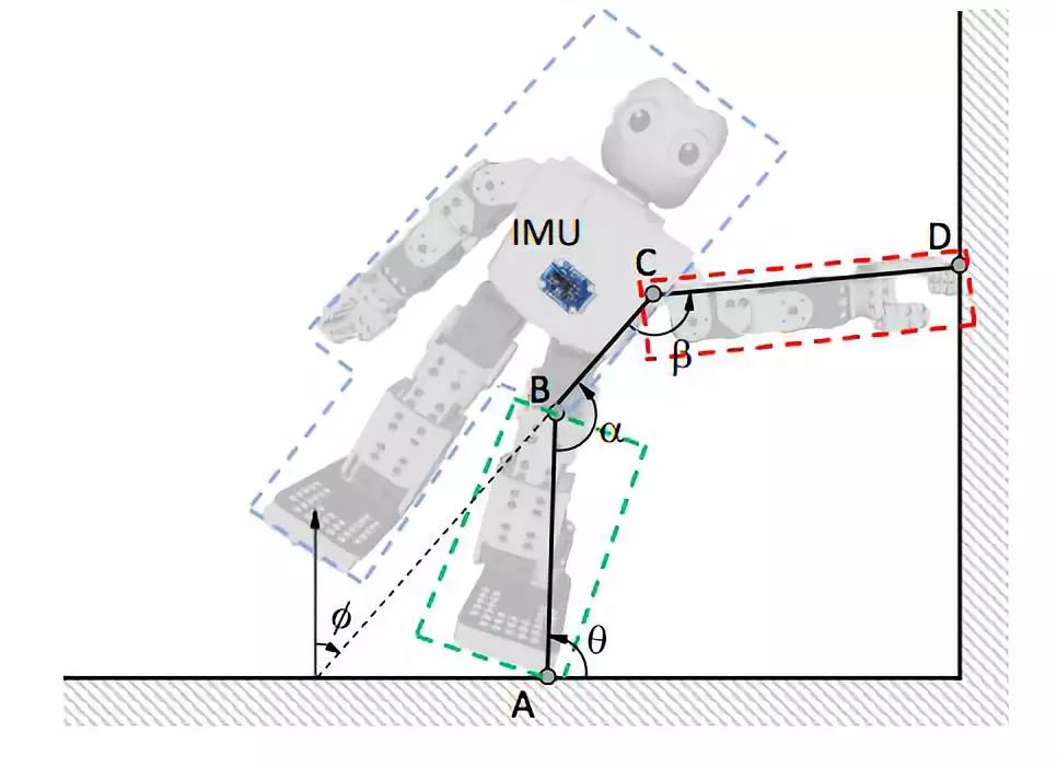 “研究人员称,这是首个摔倒时会自己扶墙的机器人 。”