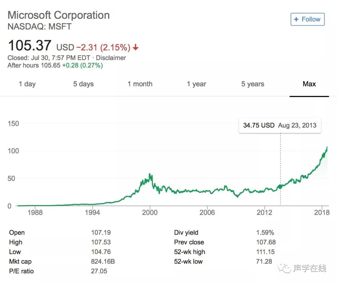对比谷歌和微软,在2000-2010的时间段里,微软停滞不前的股价也是资本市场对整个公司在多重挑战下平平表现的侧面回应。
