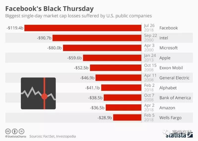 作为美国五大科技巨头中最年轻的一家公司,Facebook在今年曾经一度冲上6000亿美元的市值地位,有望争取成为第一个万亿公司。然而丑闻危机再起再加上财报不尽人意,一夜之间,Facebook市值大跳水,一下子缩水1230亿美元。