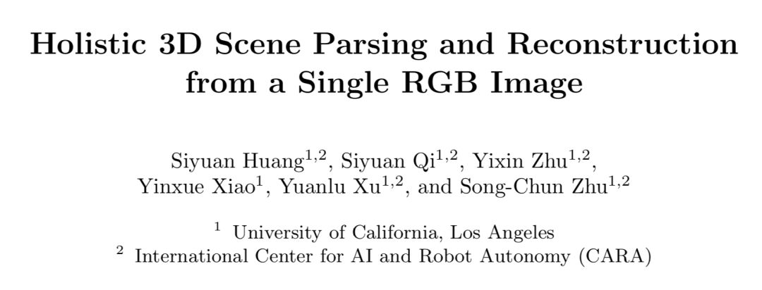 我们提出了一种计算框架,将视觉概念作为逆图形,使用随机语法模型(stochastic grammar model),联合解析(jointly parse)单幅RGB图像,重建出由一组CAD模型组成的整体3D结构。