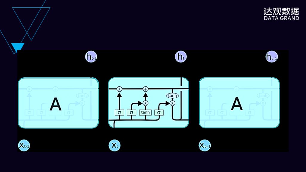 深度学习 另外一个被广泛使用的网络是 循环神经网络 ,循环 神经网络 有非常多的变种,这张图是它其中的一个,叫 LSTM ,经常被用于 语音识别 和 文本处理当中。