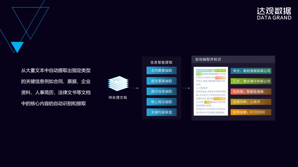 关键信息给抽取出来,然后使用各种业务规则对合同进行智能审阅。这种简单的方法就可以达到非常高的效果,可以替企业节省大量的法务人员。