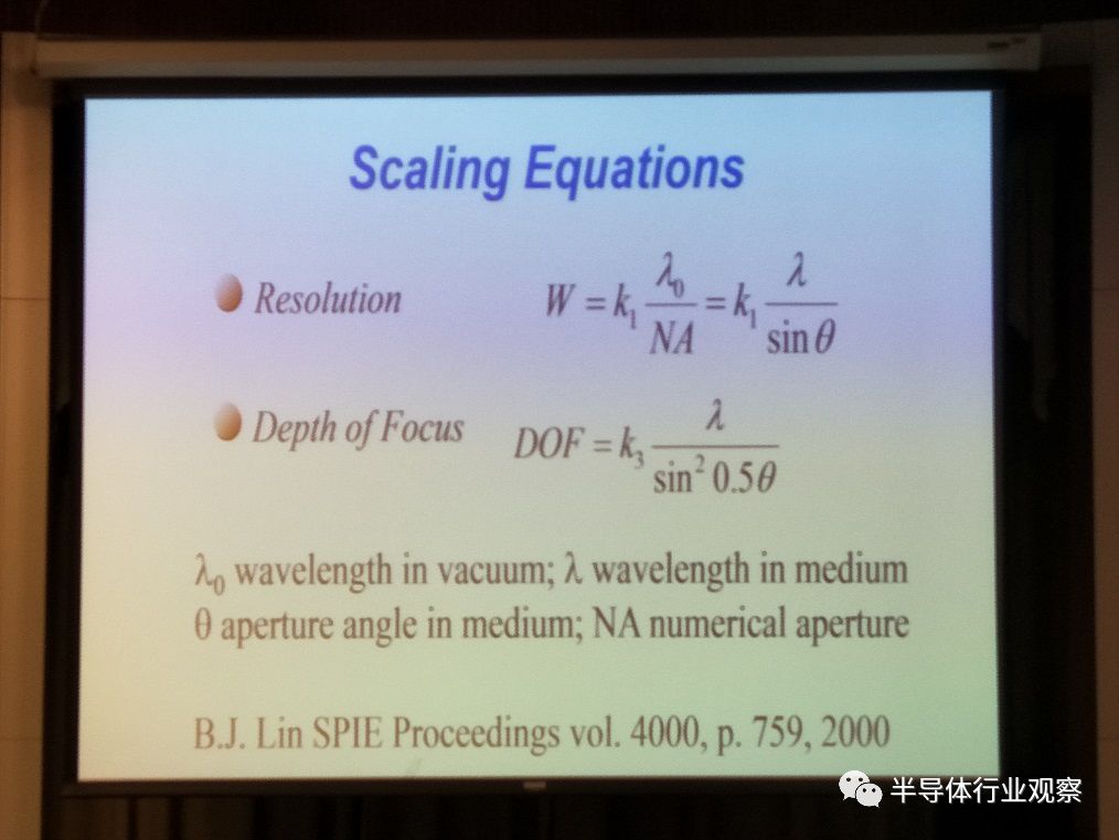 随着林本坚博士开创了浸润式光刻技术(Immersion Lithograpy),2002年之后,该技术迅速成为光刻界的新宠。在传统光刻技术中,镜头与光刻胶之间的介质是空气,而所谓浸润式光刻,就是将空气换成液体,利用光通过液体介质后波长缩短来提高分辨率。尤其是 ArF(193nm)浸润式光刻机的出现,使得半导体制程从90nm一直发展至14nm。