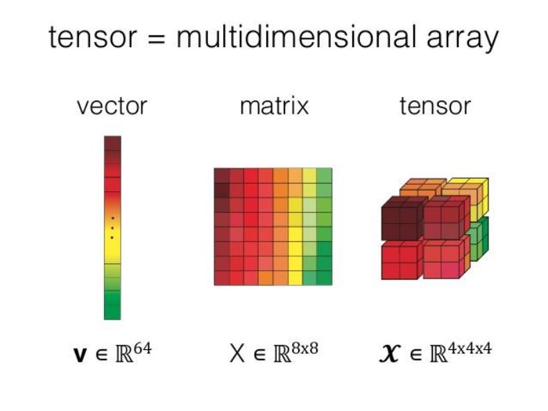 从左到右:向量(DSP 的基本操作单元)、矩阵(TPU、GPU 的基本操作单元)和张量