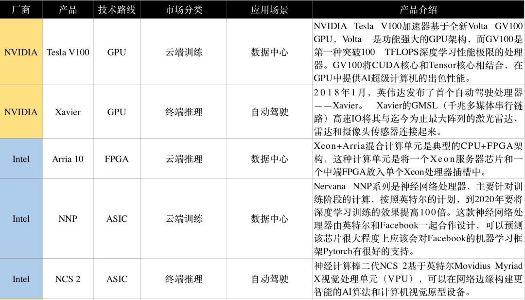 AI芯片主要厂商介绍
