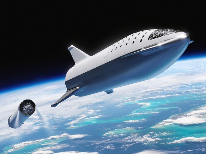 但是,与SpaceX正在研发中的大猎鹰火箭(BFR)相比, 重型猎鹰也相形见绌。(BFR只是个非正式命名,是研究人员最初使用的代码)11月下旬,马斯克宣布将BFR改名,上面级载人部分称为Starship(星际飞船),下面的火箭助推部分称为Super Heavy(超级重)。火箭助推器由31台猛禽发动机组成,目前尚在研发当中,而飞船部分将配备7台猛禽发动机。两部分都设计为可以重复使用的,而载人飞船将能运载数十人,脱离地球轨道,到达目的地。