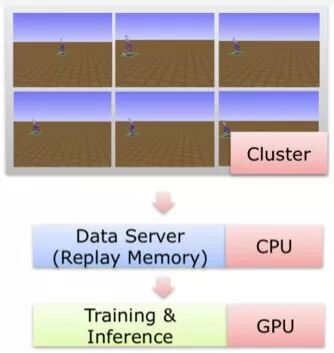 4)Parallelization:最后,基于PaddlePaddle的高效的计算框架,采用多个CPU的模拟器,以及一个data server、一个高性能GPU作为单机多卡的训练,将训练性能提高几百上千倍。