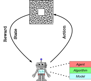 强化学习 的主要思想是基于机器人(agent)和环境(environment)的交互学习,其中agent通过action影响environment,environment返回reward和state,整个交互过程是一个 马尔可夫决策过程 。