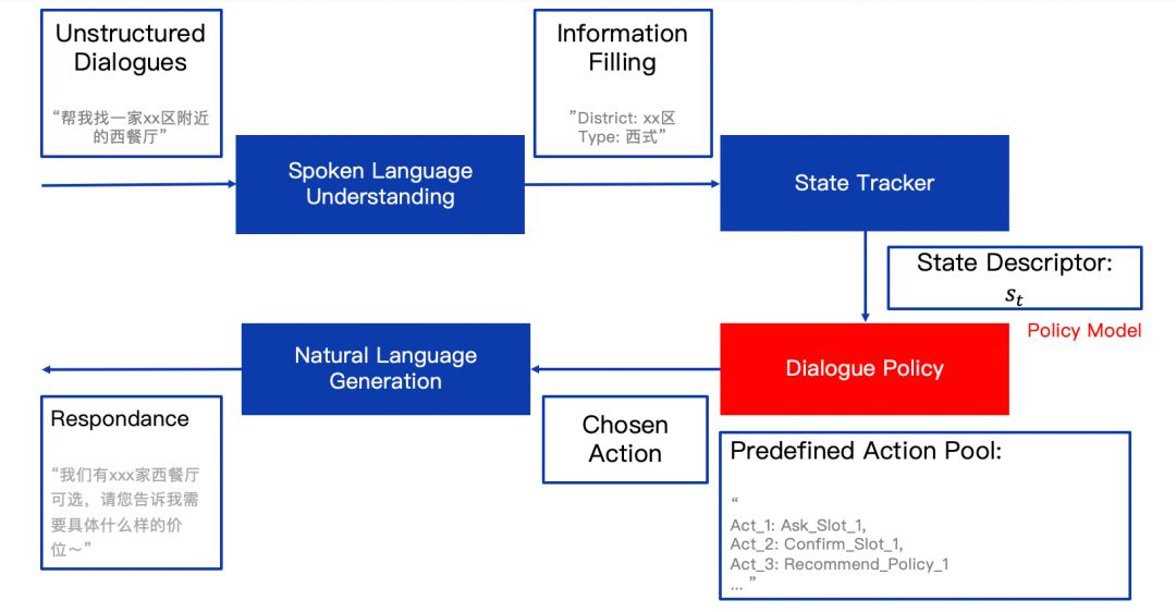 对话系统 可以分为任务型 对话系统 (Task Oriented Dialogue System)和开放 对话系统 (Open Domain Dialogue System),经典的任务 对话系统 结构如下。在对话管理中, 强化学习 可以起到非常重要的作用。