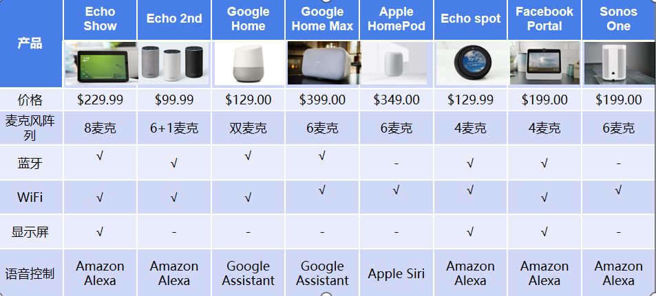 使用双麦克阵列最典型的智能音箱是 Google Home,2016年,谷歌推出Google Home,与Amazon Echo相比,最大的区别就是 麦克风阵列 , Amazon Echo采用的是环形6+1麦克风阵列 ,而Google Home只采用了双麦克阵列。