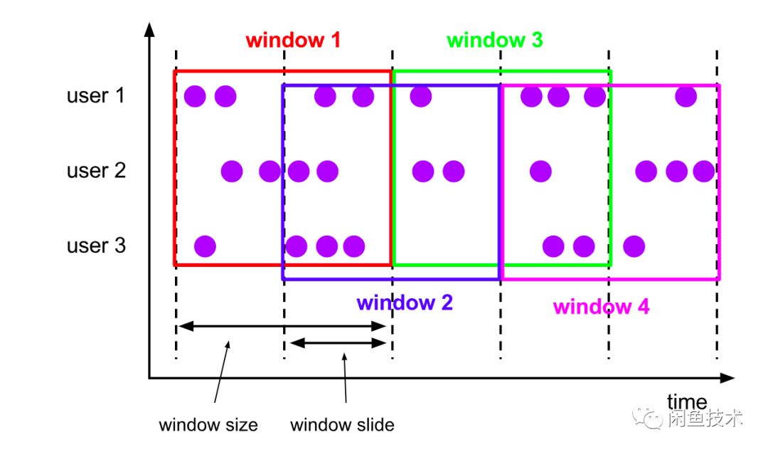 滑动窗口与滚动窗口类似,窗口有固定的size,与滚动窗口不同的是滑动窗口可以通过slide