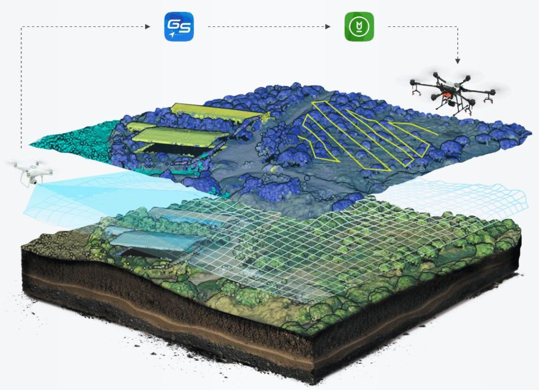 大疆本次展示的 T16 是目前国内首款将三维场景重建、地图语义识别两项 AI 技术实现应用落地的植保 无人机 。在果树场景下作业,通过航测 规划 ,大疆智图(Terra)的导入与处理后,就可以实现对作业场景的识别,果树、建筑物、电线杆、河流,空地等细节均不会遗漏。
