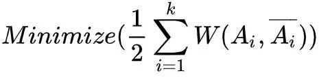 Ai 和其他顶点集之间的边的权值和。优化目标『将图划分为不同顶点集,使得顶点集之间的边权值和最小』可以表示为: