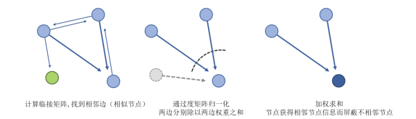 1. 对于当前节点 i 对应的特征向量 xi 和相邻节点 j 对应的特征向量 xj ,他们的相似度评分为: