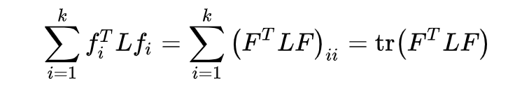 其中, L=D-W 为拉普拉斯矩阵,其中 D 为度矩阵, W 为邻接矩阵。最小化上式即最小化: