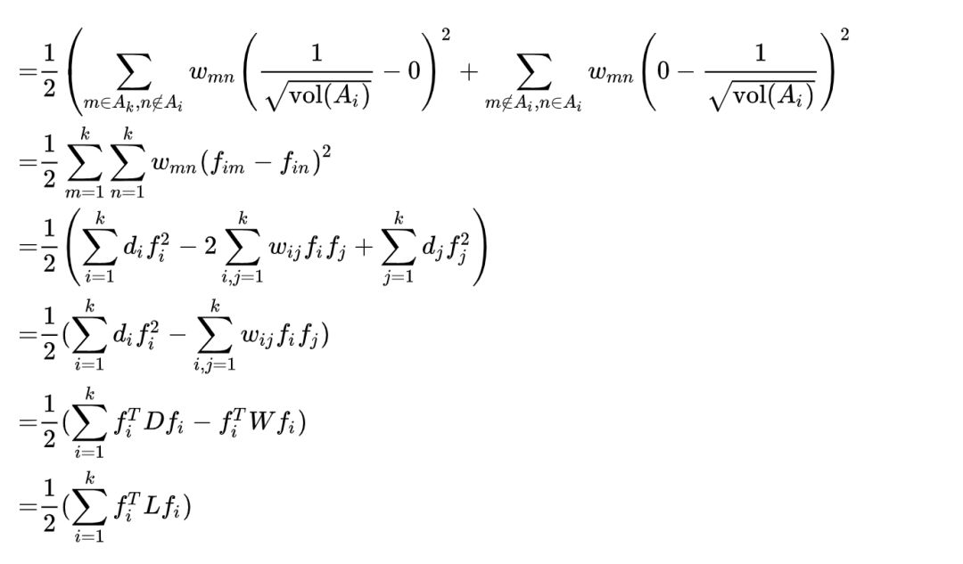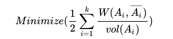 通常,我们使用 vol( Ai) 即顶点集 Ai 中顶点的度之和度量顶点集的大小(比起顶点数量,我们更关注边的数量),来对优化目标进行归一化: