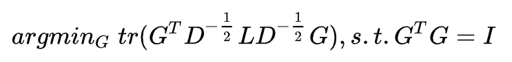 其中, L=D-W 为拉普拉斯矩阵,其中 D为度矩阵, W 为邻接矩阵。上式可以转化为: