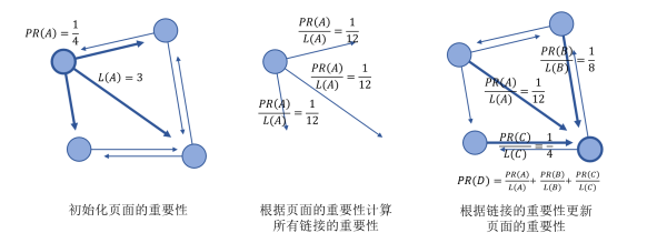 PageRank 解决了重要性的量化和累积问题,赋予了大流量网页更高的权重 。PageRank 的做法是: