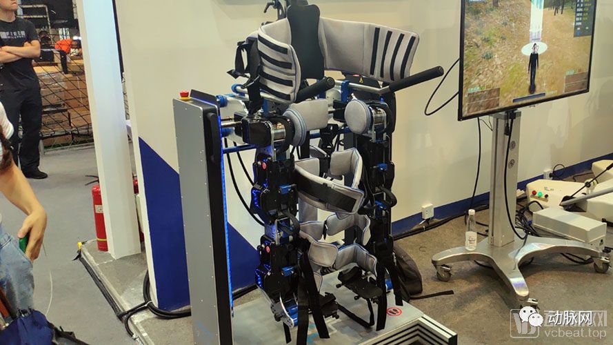 记者在现场体验了一下这台 康复机器人 ,在完全不用发力的前提下外骨骼会带动下肢摆动,模拟正常的步行,甚至可以模拟以不同的步行速度及不同的地形,相当有趣,且整个步行过程则会被系统记录下来,用于进行之后的康复分析。