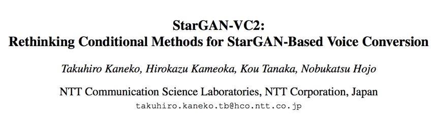 而今年的Voice Conversion方向的研究重点主要集中在基于GAN的方法上。NTT的Takuhiro Kaneko在文章“StarGAN-VC2:Rethinking Conditional Methods for StarGAN-Based Voice Conversion”中,提出了第二代的StarGAN,该方法提出了一种新的源-目标条件对抗