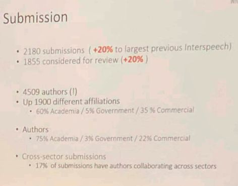 高音质语音生成算法及Voice conversion是今年Interspeech研究者关注的两大热点。