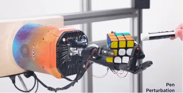图片来源:OpenAI官网在这种突发的环境情况下,机器人虽然未经历干扰训练,但它仍然顽强坚持,设法解决魔方。这也就印证了该