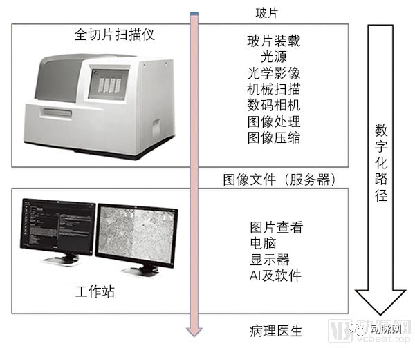 数字病理(Digital Pathology)是指将计算机和网络应用于病理学领域,将现代数字系统与传统光学放大装置有机结合的技术。它通过全自动显微镜或光学放大系统扫描采集得到高分辨数字图像,再应用计算机对得到的图像自动进行高精度多视野无缝隙拼接和处理,获得优质的可视化数据,以应用于病理学的各个领域。