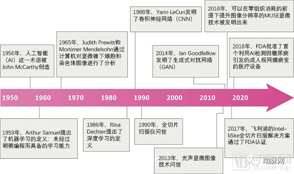 数字病理的历史可以追溯到100年前,当时首次使用专用设备将显微镜下的图像捕获到胶片上。将显微镜图像传输到远程设备的电子病理也已经存在了将近50年——1965年,Prewitt和Mendelsohn将显微镜下的光学影像进行扫描,并以数字化方式重建出来。不过,当时的数字显微镜价格高达30万美元,且需要差不多一天的时间才能扫描完一张玻片,几乎不具有太多的实用性。