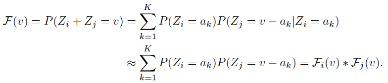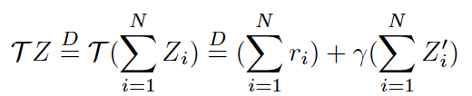 在 DRDRL 中,我们将子奖励(sub reward, r_i)视为随机变量,将其对应的子奖励之和(sub return, Z_i)所对应的分类分布用 F_i 来描述。通过进行独立性假设,最终 Q 函数对应的分布 F 可以表示为不同子分布 F_i 之间的的一维卷积: