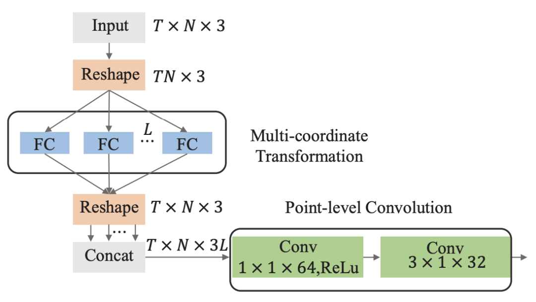L就是旋转矩阵的个数,即增强的数据倍数。将得到的L组增强数据在通道维度进行concat,然后再通过point-level convolution(参考HCN)进一步提取特征。