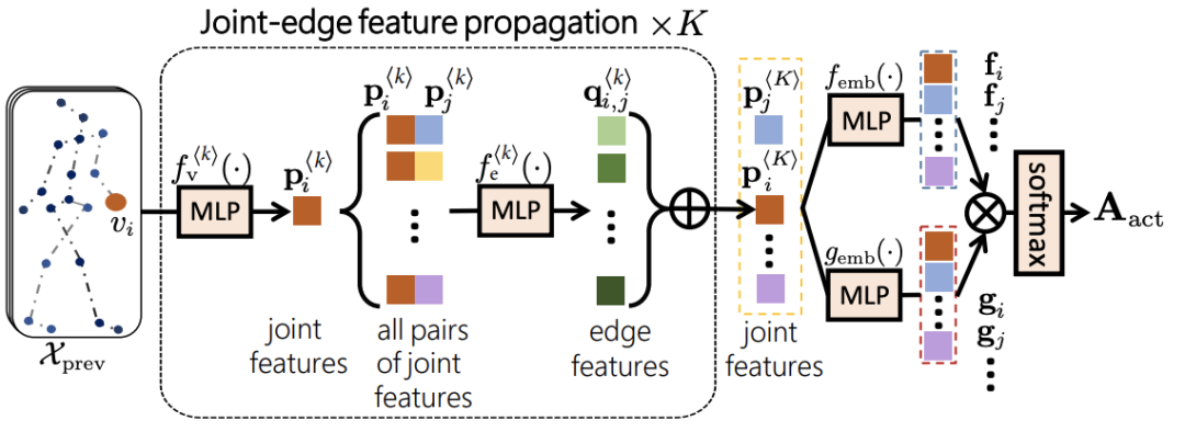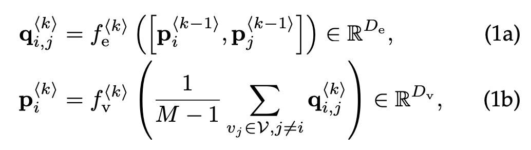 首先设计了一种信息在节点和边之间循环传播更新的方法,这样做是为了得到节点的高维特征表示,进而用于计算邻接矩阵,而不是直接更新节点信息: