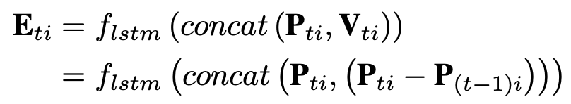 通过求相邻帧插值可以得到motion信息,再通过FC和将motion信息与原始数据结合,然后通过LSTM进行初步的通道扩张: