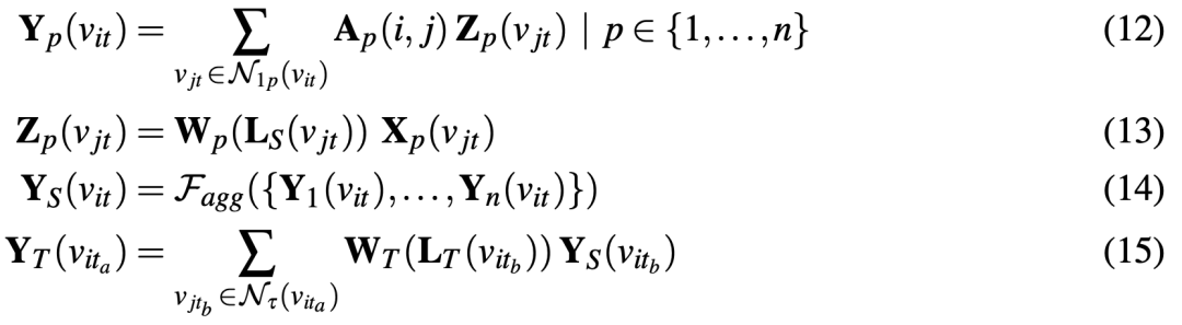 公式15表示时域卷积,将每个关节与该关节前后τ帧内的值做加权求和。