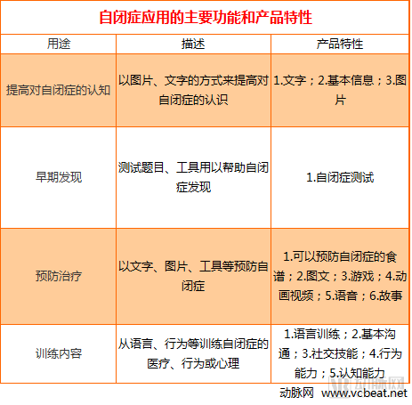 其中,国外自闭症App功能集中在治疗上;国内尚处早期阶段,自闭症App集中在预防及提高认知方面。