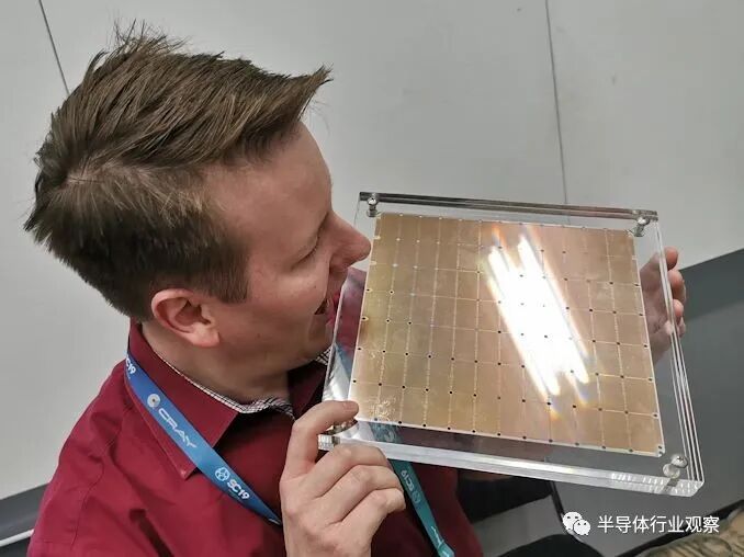Hot Chips 2019的亮点之一是Cerebras Wafer Scale Engine展示的一个与晶圆一样大的AI处理器芯片。在这个处理器中,包含1.2万亿个晶体管,而硅面积超过46225平方毫米。这是通过跨掩模版图案(cross-reticle patterning)中的突破性技术实现的。由于设计中内置了冗余级别,因此每次都能确保100%的良率。第一个WSE系统CS-1在Supercomputing 2019上展出。