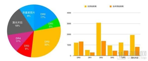 从数据的采集来看,该数据库数据包含了早期病变、中期病变和晚期非增殖型病变等不同时期、不同种类的糖尿病视网膜病变。同时,北京协和医院对各病例分为了“无其他疾病”与“合并其他病症”两类,使其尽可能的符合真实世界情况。