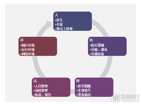 据参与数据库质量管理体系设计和建设的上海博方负责人冯庆宇介绍,由于数据库建设包括数据采集、预处理、标注及构建等诸多环节,所以在整个体系建设过程中,对数据的质量管理一一对应ISO9001质量管理体系中人、机、料、法、环的要求,将医疗环节中的要素以及管理要求予以明确,其中:人——实施者、相关参与人员及相应的资质,如医生、专家、算法工程师及资质要求;机——实施的设备,如具体的医疗器械、采集通讯设备、存储设备;料——图像数据,如医学图像、生理信号、患者信息;法——法规标准及操作规程,如临床指南、人员管理SOP、人员操作及设备操作SOP;环——环境要求,如阅片环境、计算机运行环境、网络环境。