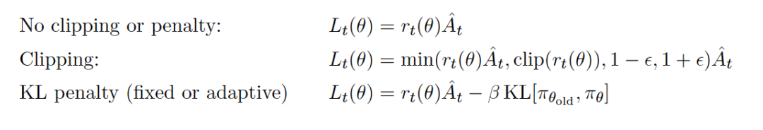 原论文对比了 no clipping or penalty ,Clipping,KL penalty 三种更新方式之间的区别。结果是后面两个表现更好,另外 Clipping 比 KL 表现更好。